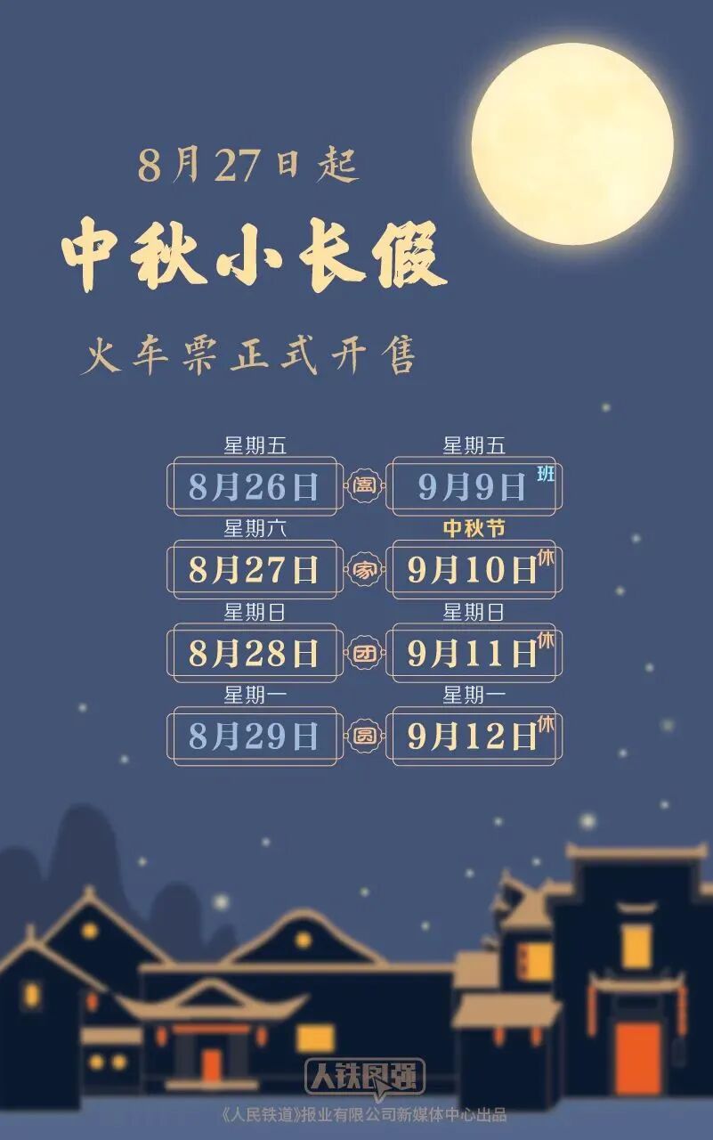 8月27日,2022年中秋假期首日的火车票正式开售。