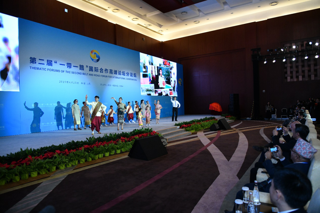 2019年4月25日,第二届“一带一路”国际合作高峰论坛民心相通分论坛在北京国家会议中心举行,图为老挝中老友好农冰村小学师生代表讲述“一带一路”上的幸福故事。中联部供图