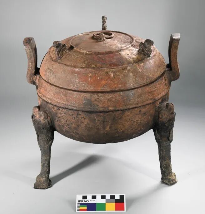 一号墓发掘工作自2020年9月开始。至2023年底,完成了墓葬封土和填土发掘工作,并提取了椁室上铺设的竹蓆200多平方米。2024年3月开始进入椁室发掘阶段,目前正在发掘清理四个分室,已提取文物1000余件。期间,淮南市为考古发掘顺利进行提供了强有力的保障,建设了一号墓现场保护大棚和文物库房、考古实验室、宿舍等必要的配套设施。考古队协助淮南市完成了《武王墩保护管理规划》《武王墩考古遗址公园规划》的编制工作。