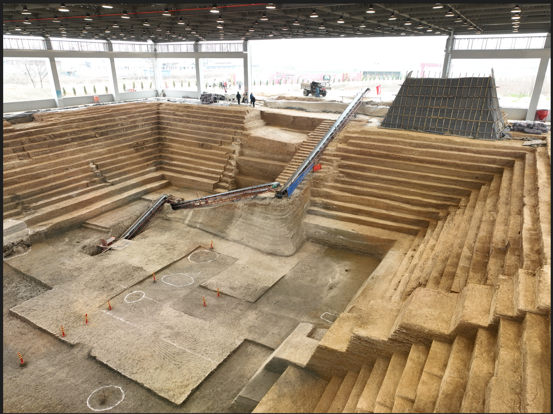 综上,武王墩一号墓是迄今经科学发掘的规模最大、等级最高、结构最复杂的大型楚国高等级墓葬,反映了楚国最高等级的丧葬礼制。墓葬形制、营建工艺、出土文物都代表了楚文化的最高成就,较全面地反映出战国时代楚国的政治、经济、文化、技术、社会图景。已发现的各类重要迹象,刷新了学界的认识,具有重要学术价值。其年代处在封建国家体系趋于解体、大一统国家即将孕育形成的关键时期,为研究周、秦、楚、汉历史演变和秦汉中央集权大一统国家及文化形成,研究楚国东迁江淮以后的社会生活面貌和历史文化图景,提供了系统性的科学考古资料。目前,武王墩一号墓椁室清理发掘正在紧张进行当中,考古队在未来的发掘过程中,将继续严格遵守田野考古工作规程,在专家组的指导下科学发掘,综合运用多种科技手段,做好椁室内文物的考古发掘、保护、提取、研究工作,深刻阐释武王墩墓蕴含的中华文明突出特性和灿烂成就。