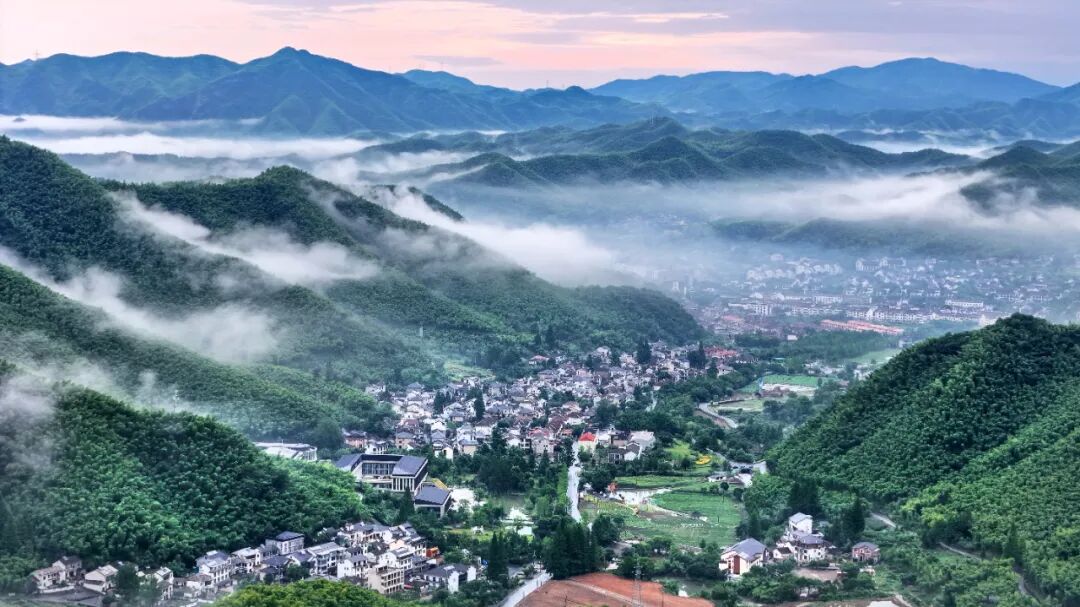 浙江省湖州市安吉县天荒坪镇余村,云雾飘渺,景色如画。潘学康摄(影像中国)