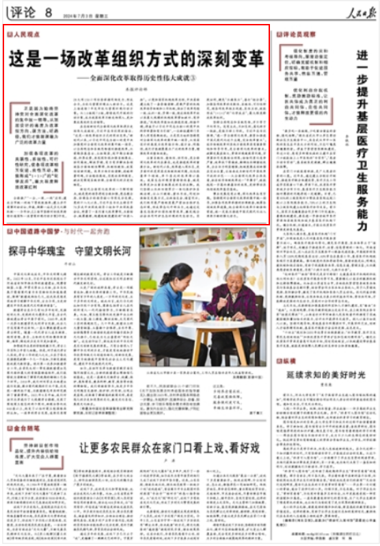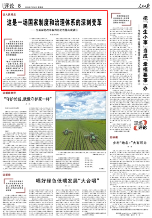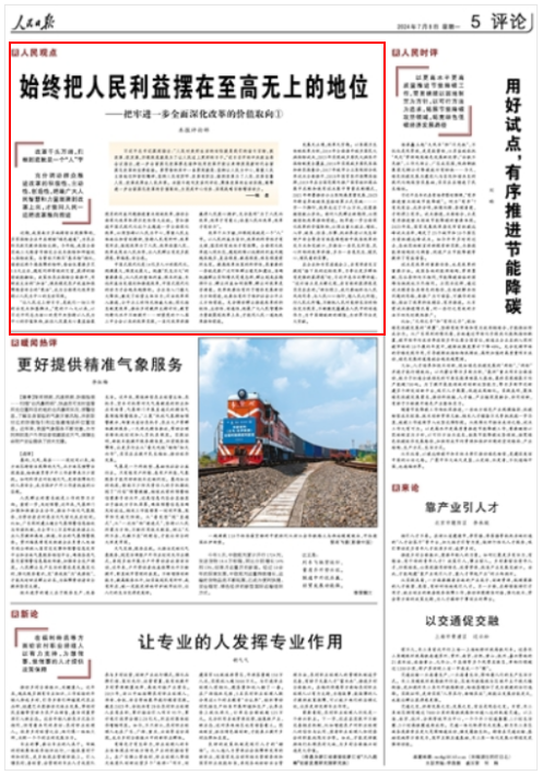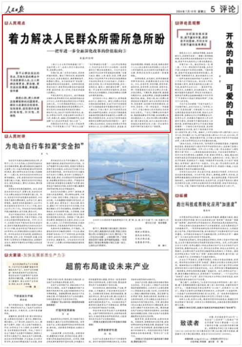 中国式现代化,民生为大。全面深化改革,人民至上。始终牢记人民是推动改革开放的主体力量,把智慧和勇气凝聚起来,让群众呼声与改革脉搏共振,让个体奋斗与改革步伐同频,这场人民广泛参与的深刻变革定将续写更加辉煌的篇章,为推进中国式现代化注入强劲动力。(本系列评论到此结束)