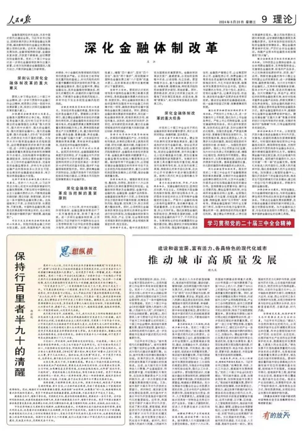 对党的二十届三中全会关于深化金融体制改革的部署和要求,我们必须深刻领会、准确把握、坚决落实。