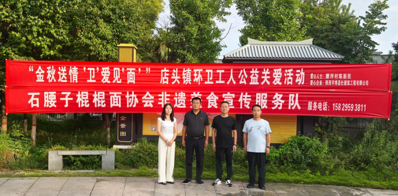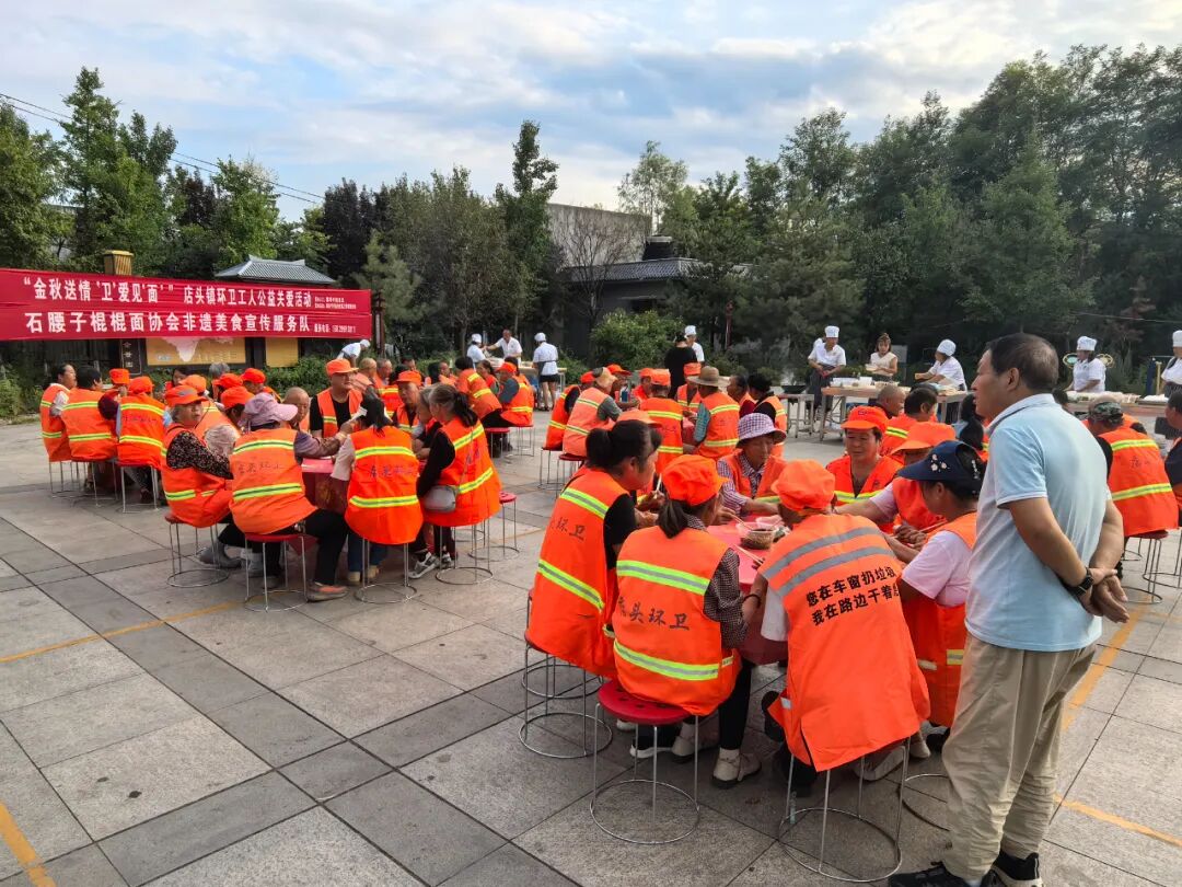 暑气半消散,万物已知秋。8月28日,店头镇联合社会爱心人士、爱心企业开展“金秋送情,‘卫’爱见‘面’”环卫工人公益关爱活动,邀请新城村石腰子棍棍面协会非遗美食宣传服务队为广大环卫工人送上一份香气四溢的非遗美食,镇相关领导、爱心人士陈新民、爱心企业陕西宇博及一线环卫工人约90人参加活动。