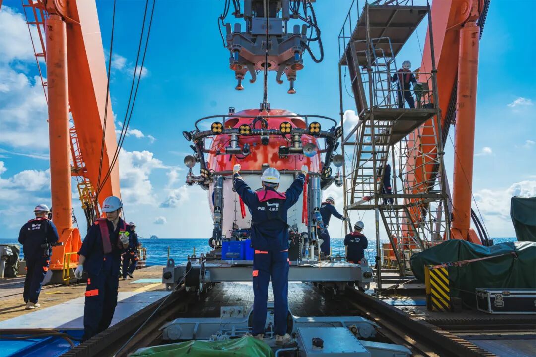 这是为深海考古进行的“深海勇士”号载人深潜器布放