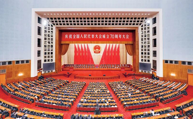 2024年9月14日上午,中共中央、全国人大常委会在北京人民大会堂隆重举行庆祝全国人民代表大会成立70周年大会。 新华社记者 翟健岚/摄