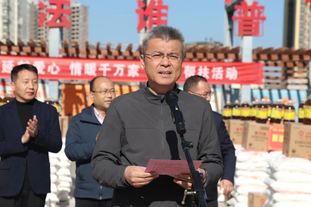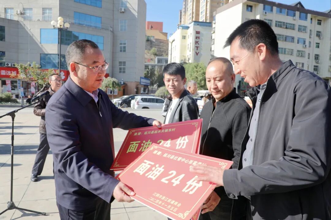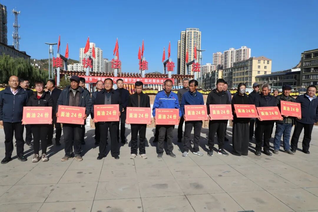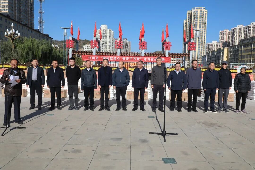 11月5日,2024年江阴市“澄延献爱心,情暖千万家”结对帮扶活动在延川县路遥广场隆重举行。江阴市澄江街道商会为延川县44个结对帮扶村的困难群众,10个慈善幸福家园共捐赠1106份爱心面、油,总价值20万元,让大家在严寒冬日深切感受到党和政府以及社会各界的关爱和温暖。充分体现了江阴市澄江街道积极推动“澄延协作”的政治担当,彰显了“澄延两地”的深厚情谊。