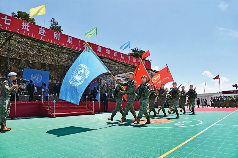 图为2024年4月9日,在刚果(金)南基伍省布卡武市的中国半岛营区,中国第27批赴刚果(金)维和部队官兵被授予联合国“和平勋章”并参加授勋仪式。 新华社发 中国第27批赴刚果(金)维和部队供图