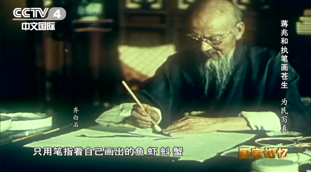 齐白石什么话也没说,只用笔指着自己画出的鱼、虾、蚪、蟹。