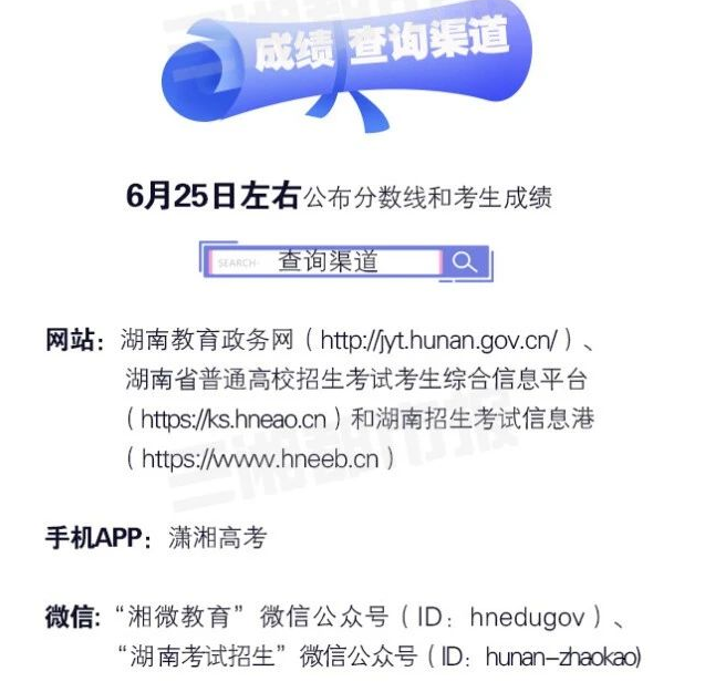 高考成绩查询时间:6月23日