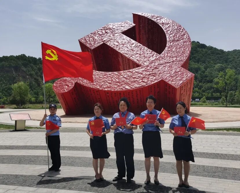 全体党员干警面对鲜红的党旗,重温入党誓词,激励自己不忘初心、牢记使命、永远奋斗。